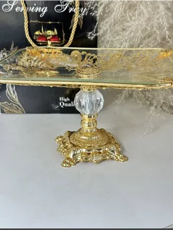 Фруктовница металлическая со стеклянным блюдом с ручкой