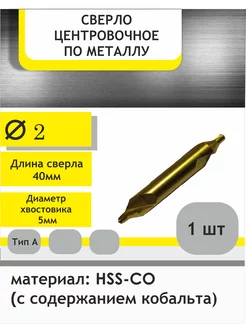 Сверло центровочное с кобальтом 2 мм тип A Р6М5К5 .1шт