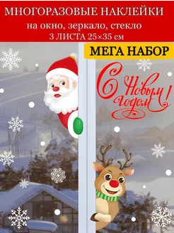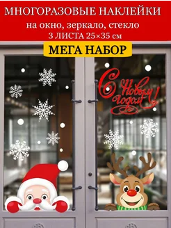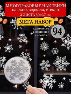Новогодние многоразовые наклейки на окно Снежинки 3 листа