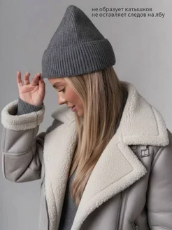 Шапка бини с отворотом вязаная кашемир