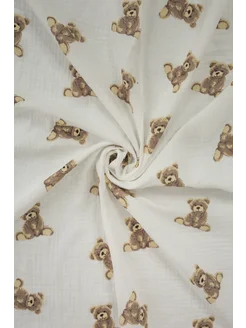 Муслин 2 метра двухслойный жатый мишки на белом фоне