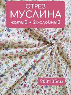 Муслин 2 метра двухслойный жатый вишни сливочный фон