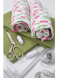Набор отрезов муслина по 1метру, тюльпаны+хаки