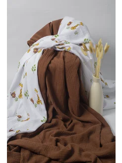 Набор отрезов широкого муслина по 1метру, жирафы+шоколадный