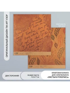 Крафт бумага для скрапбукинга "Листья и рукопись" 180гр, 10