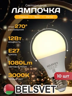 Светодиодная лампочка A60 12W 3000K E27 тёплый свет 10 шт