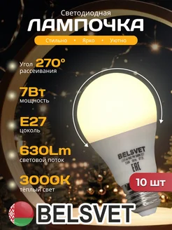 Светодиодная лампочка A60 7W 3000K E27 теплый свет 10 шт