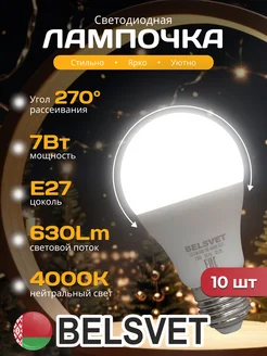 Светодиодная лампочка A60 7W 4000K E27 нейтральный свет 10шт