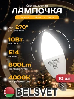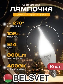 Светодиодная лампочка C37 10W 4000K E14 белый свет 10шт