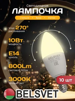 Светодиодная лампочка C37 10W 3000K E14 тёплый свет 10шт