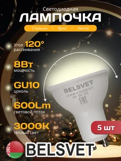 Светодиодная лампочка GU10 8W MR16 3000K тёплый свет 5шт