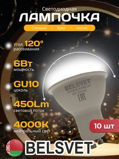 Светодиодная лампочка MR16 6 W 4000K GU10 белый свет 10 шт