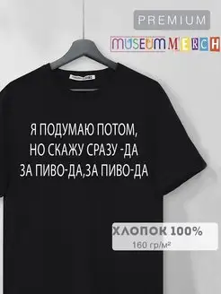 Футболка черная с принтом За пиво да оверсайз унисекс