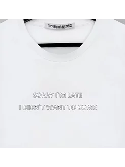 Футболка белая с принтом Sorry I`m late оверсайз
