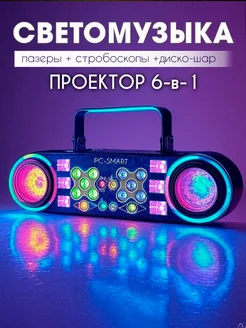 Светомузыка со стробоскопом поворотный цветной проектор