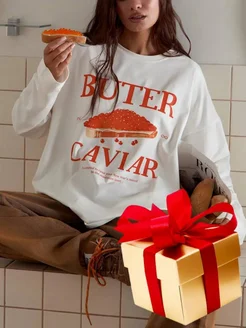 Лонгслив женский оверсайз с принтом
