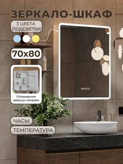 Зеркало-шкаф с подсветкой 3в1 часами подогревом 70*80 правый