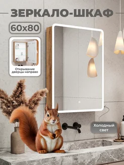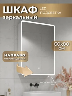Зеркало-шкаф с подсветкой в ванную 60*80 правый