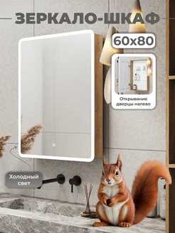 Зеркало-шкаф с подсветкой в ванную 60*80 левый