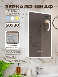 Зеркало-шкаф с подсветкой 3в1 часами подогревом 50*80 правый