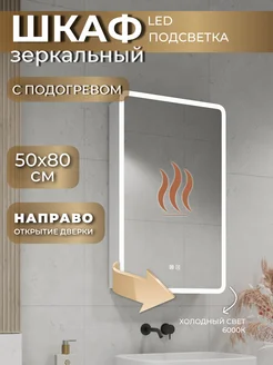 Зеркало-шкаф 500х800 правый с холодной подсветкой подогревом