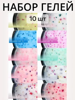 Набор витражных гелей с сухоцветами для ногтей 9 шт