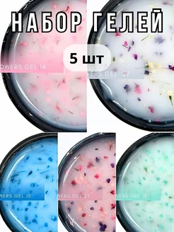 Набор гелей для наращивания ногтей с сухоцветами 5 шт