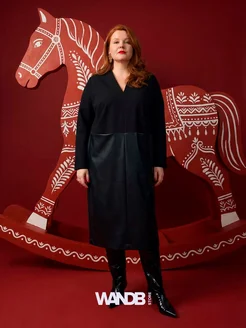 Платье больших размеров комбинированное кожа и трикотаж