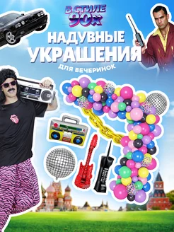Шарики вечеринка 90х, набор магнитофон дискошар стиль 90е