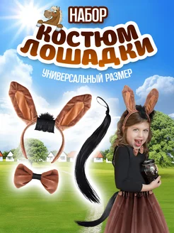 Костюм лошади карнавальный, хвост и ободок с ушами в садик