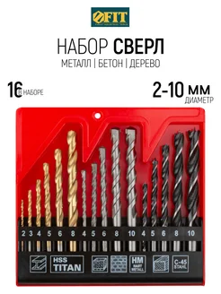FIT Сверла металл бетон дерево, универсальный набор 16 шт