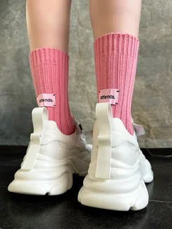 Носки высокие в рубчик с надписью демисезонные 2 пары
