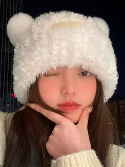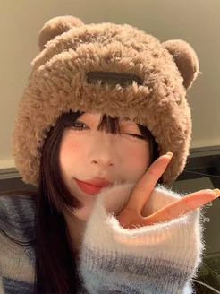 Шапка Y2K плюшевая с ушками мишки