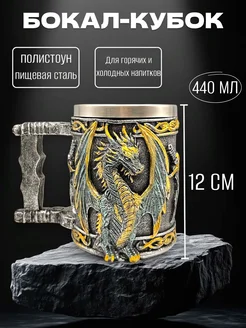 Термокружка Кружка мужская, пивной бокал 440 МЛ, Дракон