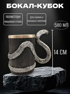 Термокружка Кружка мужская, пивной бокал 580 МЛ, Змея