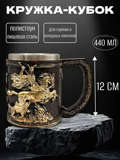 Термокружка Кружка мужская, пивной бокал 440 МЛ,Лошадь