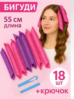 Бигуди для локонов спирали с крючком 55 см 18 шт