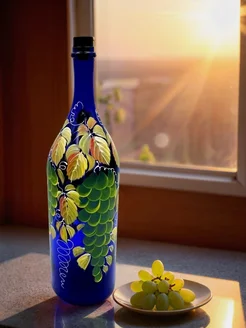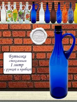 Бутылка с ручкой 1 литр Бутыль из синего матового стекла
