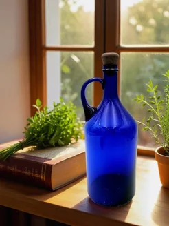 Бутылка стеклянная с ручкой 2л Бутыль синего стекла