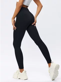 Лосины женские леггинсы в рубчик черные спортивные на весну