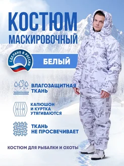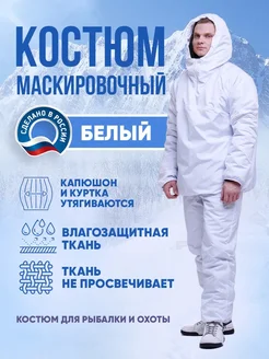 Маскхалат белый зимний костюм для рыбалки и охоты