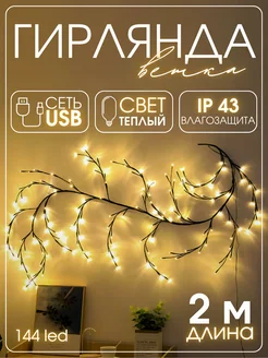 Гирлянда на стену декоративная Ветка новогодняя USB