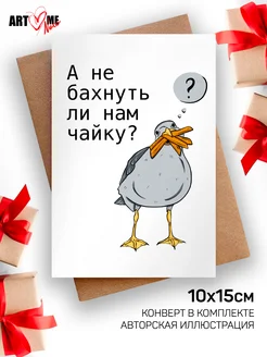 Открытка с юмором "А не бахнуть ли нам чайку?"