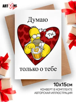 Открытка с Гомером Симсоным "Думаю только о тебе"