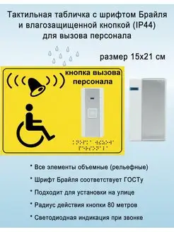 Табличка шрифт Брайля "Вызов персонала" и звонок