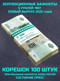 Коллекционные банкноты 5 рублей корешок 100 штук ПРЕСС