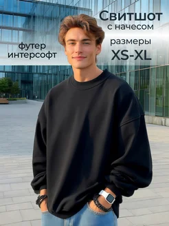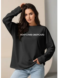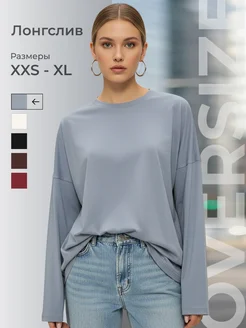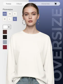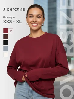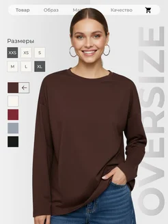 Лонгслив оверсайз из хлопка с длинным рукавом однотонный