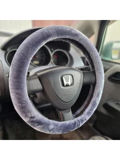 Оплетка на руль меховая 37-39см серая М