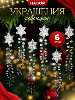 Елочные украшения игрушки на елку сосульки снежинки 12 шт