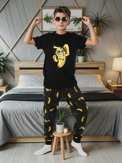 Пижама для подростка со штанами и футболкой, домашний костюм
